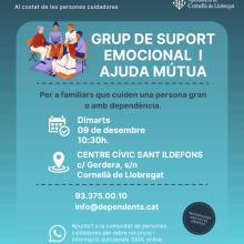 Espai de relació per a compartir i gestionar les emocions que comporta tenir la cura d’un familiar dependent.