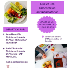Taller sobre alimentació antiinflamatòria imaprtit per l'equip de nutricionistes dels diferents EAP's de Cornellà de Llobregat.