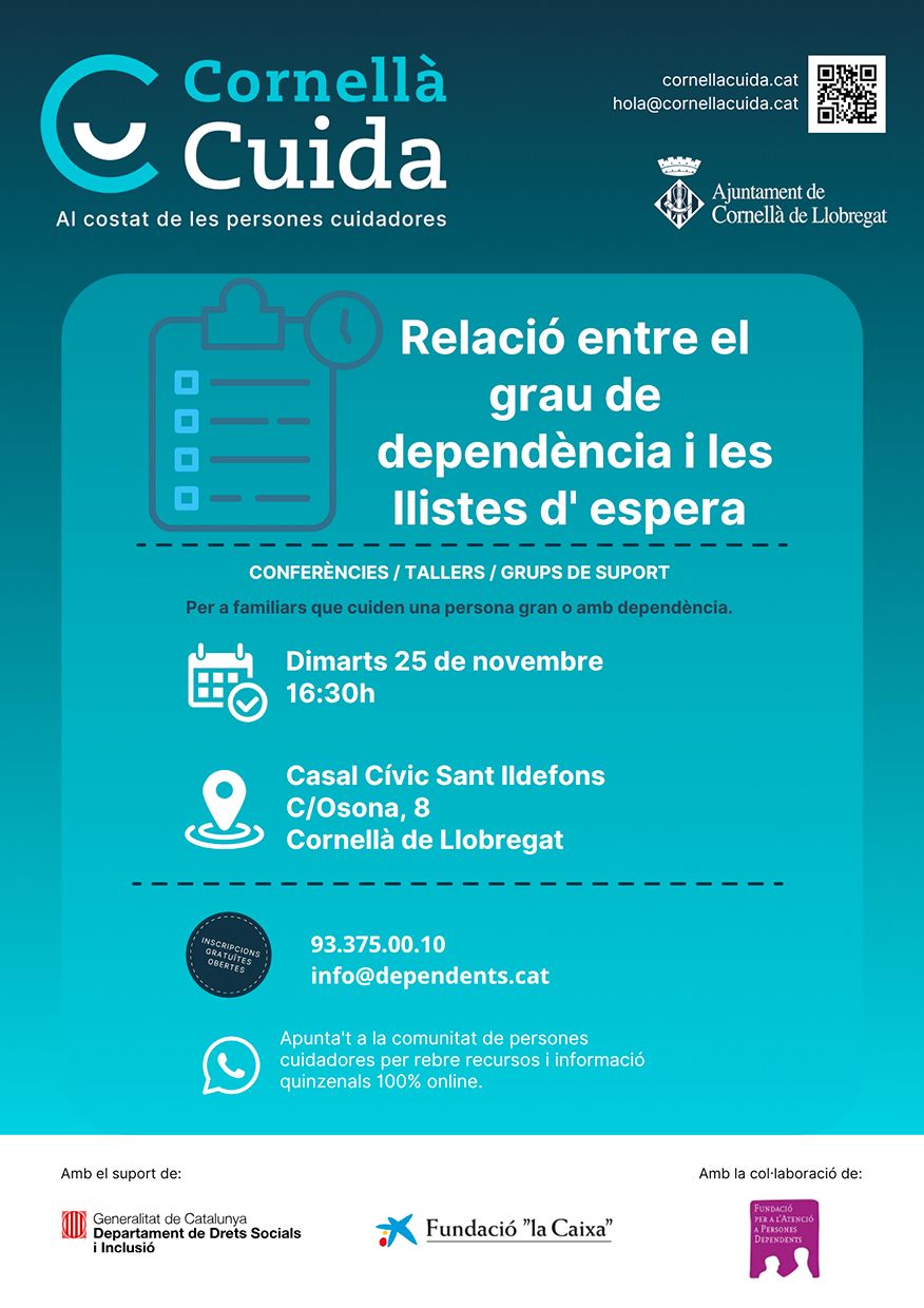 Organitzadora i contacte: Fundació per a l'atenció a persones dependents - 93.375.00.10 - hola@cornellacuida.cat
