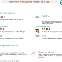 Baixen els llocs de treball i augmenta l’atur registrat, els demandants d’ocupació i les persones afectades per un expedient de regulació d’ocupació.